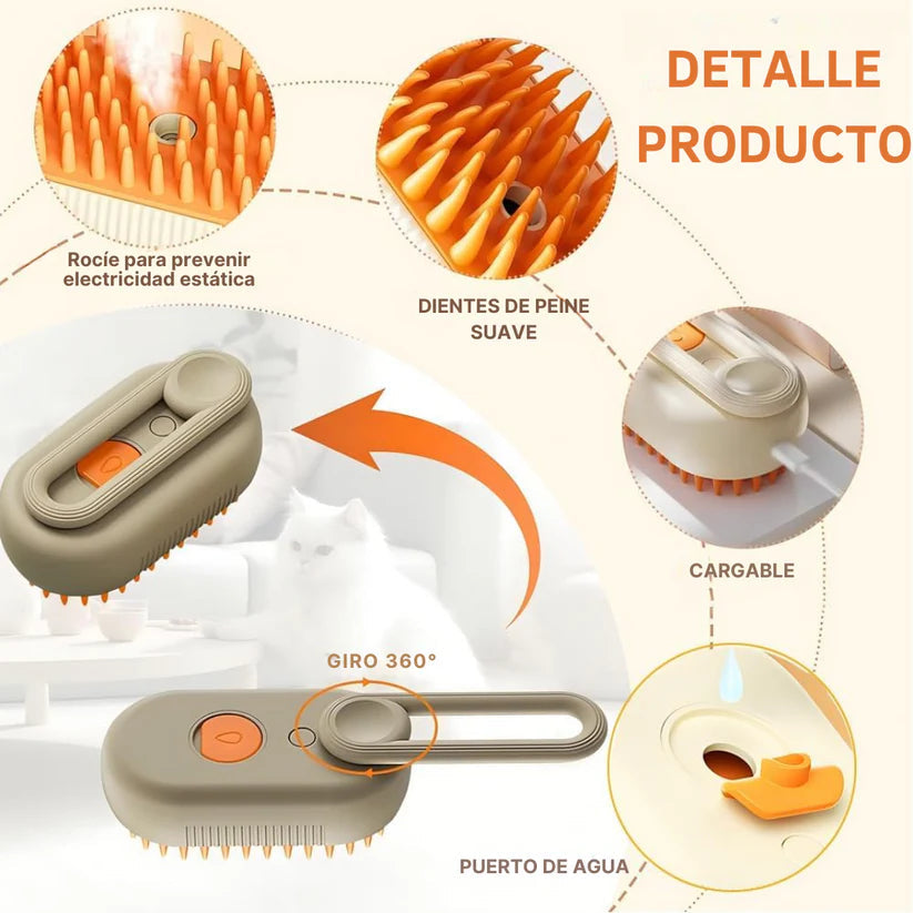 El cepillo de vapor para gatos tiene cerdas suaves con puntas redondeadas, lo que garantiza que la piel de tu mascota no se dañará durante el proceso de limpieza.